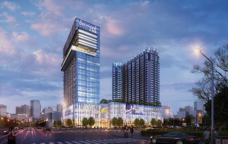大茂城项目用地42亩,总建面约15万方,由“一座通透水晶商业盒子、两座金字塔”构成,商场为超10万方全玻立面大型购物中心,金字塔为南北两座L型SOHO公寓和商务公寓组成。