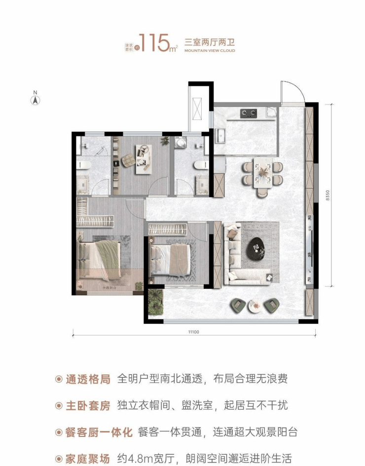 产品:建筑面积约115-139㎡宽境户型
