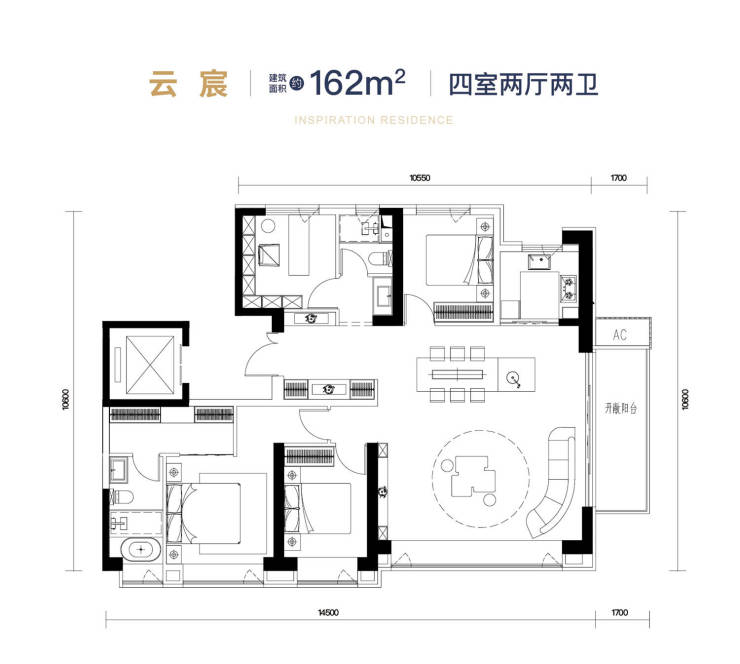 住宅以高端改善的142㎡、162㎡、183㎡大户型产品为主,项目所有户型层高均为3.15米。
