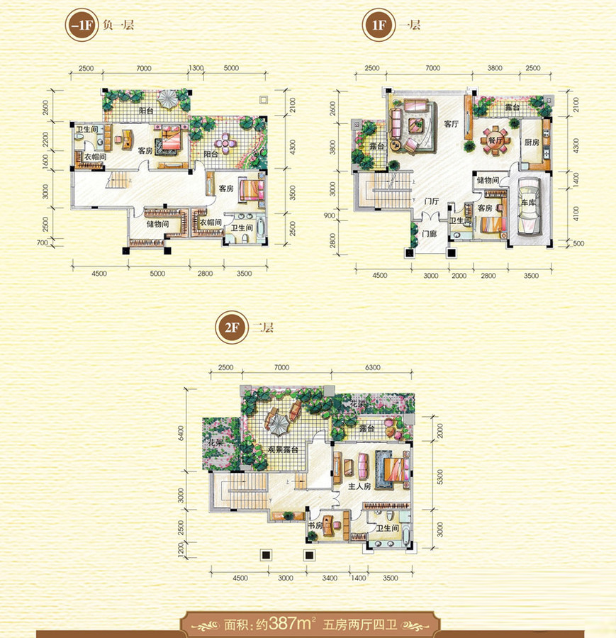 五房两厅四卫-5室2厅4卫0厨建筑面积387.00平米