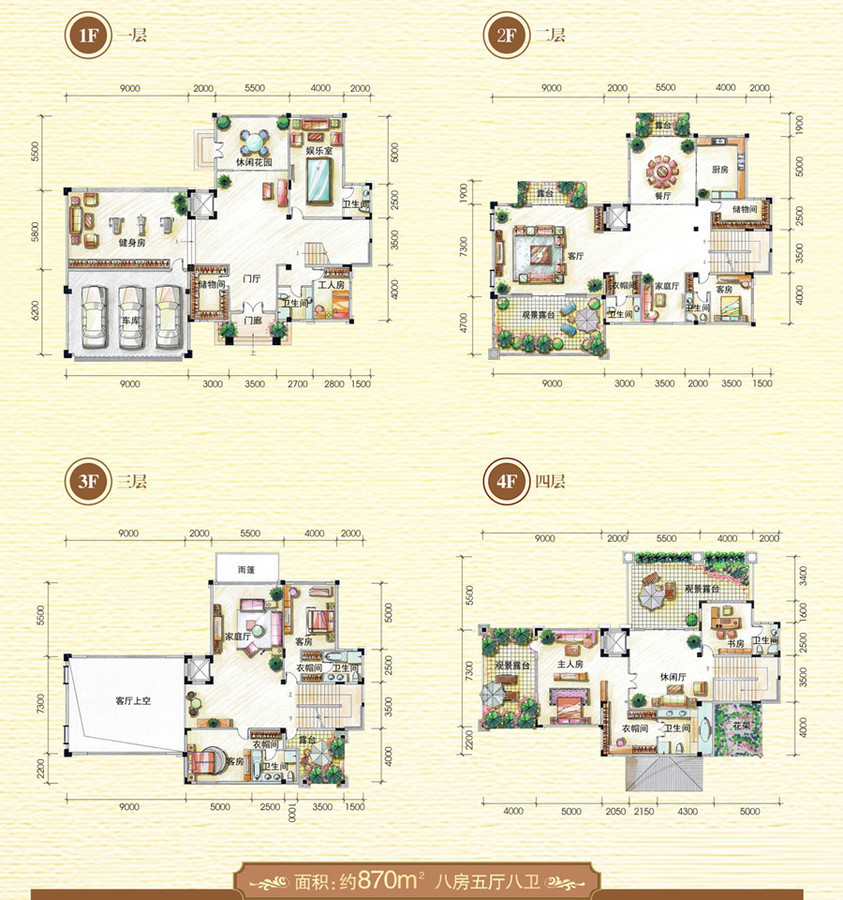 八房五厅八卫-8室5厅8卫0厨建筑面积870.00平米